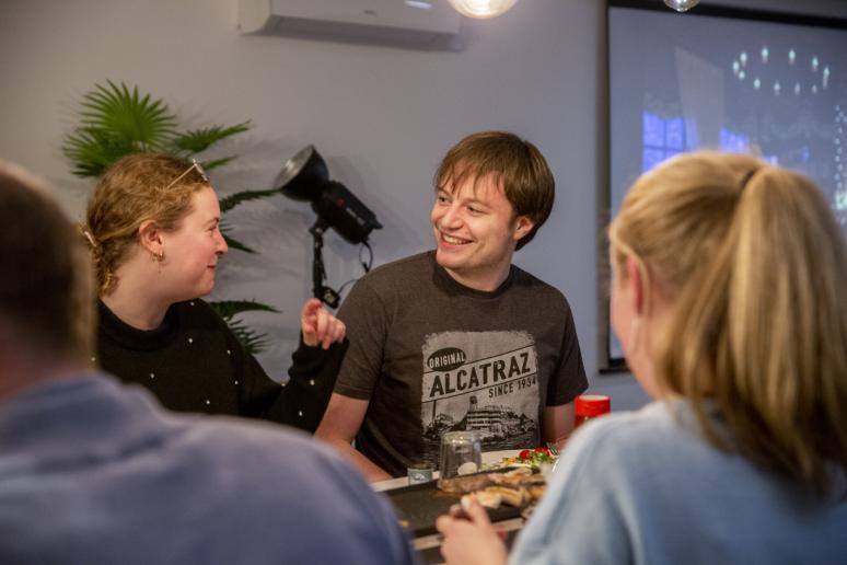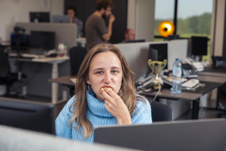 Uiteraard kan je bij ons wel eens thuiswerken, maar hier heerst een office first mentaliteit. Zo kan je het best aan projecten werken, en aan onze eigen teambuilding, uiteraard!